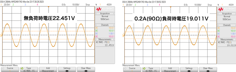 ユーザー様が取り扱いやすい様に、出力電圧の無負荷・負荷特性を公開しています。